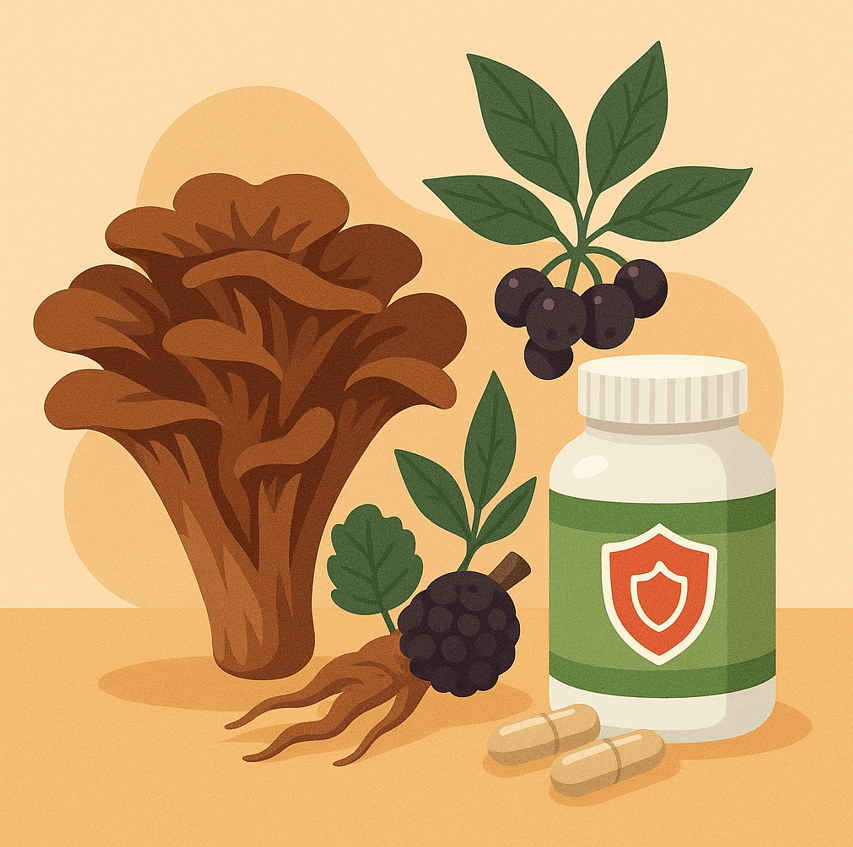 Chez Bioclès, nous avons formulé un complexe 100 % naturel associant deux plantes adaptogènes reconnues : le Maitake et l’Éleuthérocoque, dans notre produit :